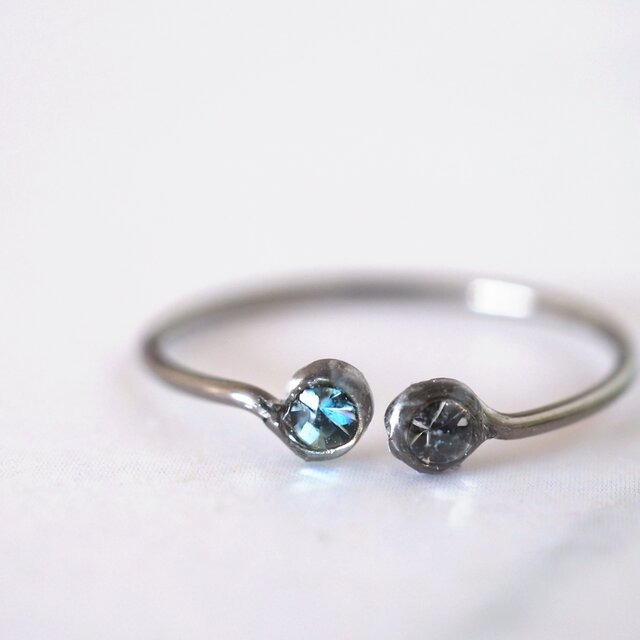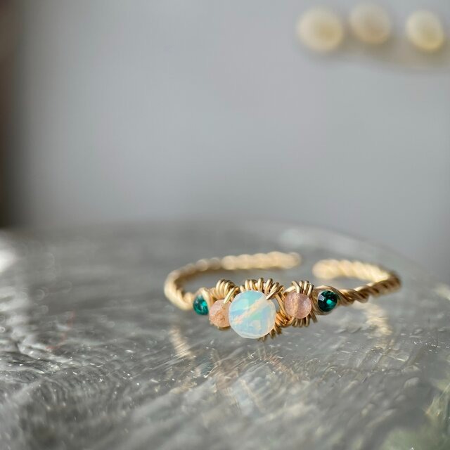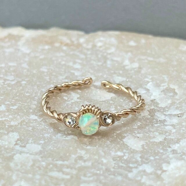 #1410K エチオピアオパールとスワロフスキーの3粒リング