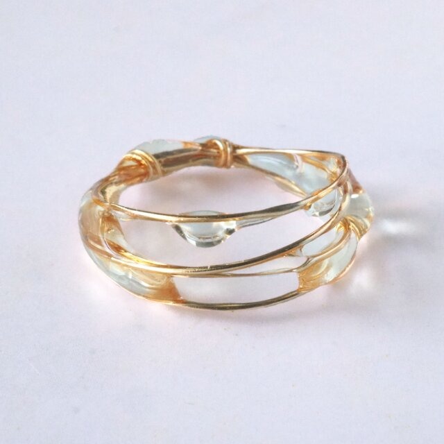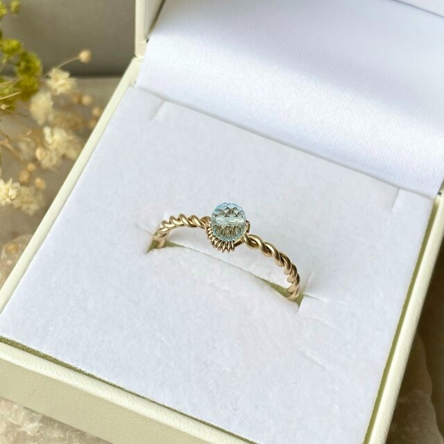 #1311K 高品質ブルートパーズ ツイストリング ゴールドフィルドリング
