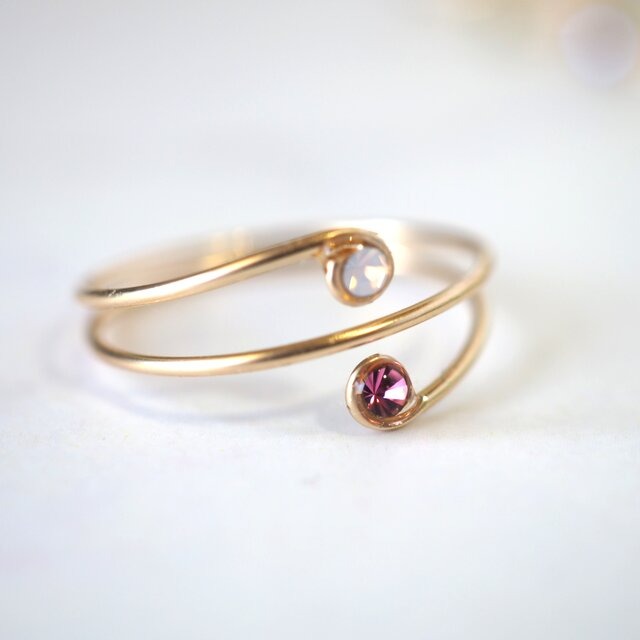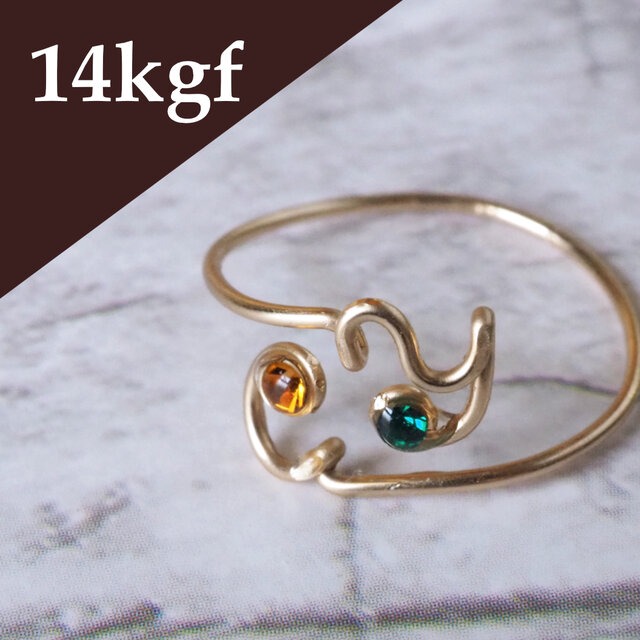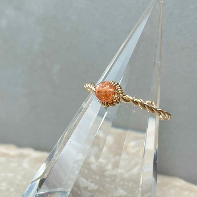 #125K サンストーン スワロ ツイストリング ゴールドフィルドリング