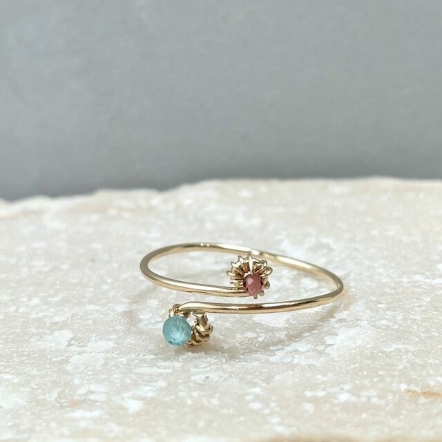 #127K ブルージルコン×ピンクサファイア ゴールドフィルドリング