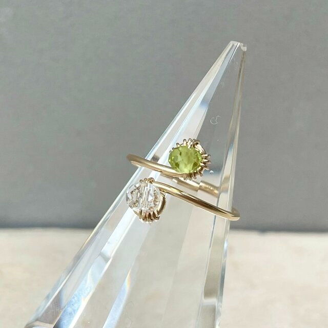 #122K 水晶×ペリドット ゴールドフィルドリング