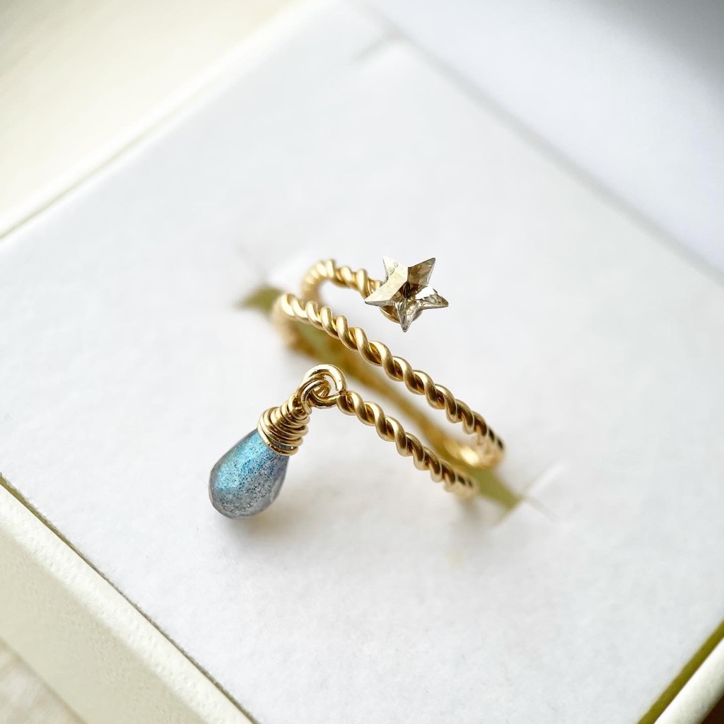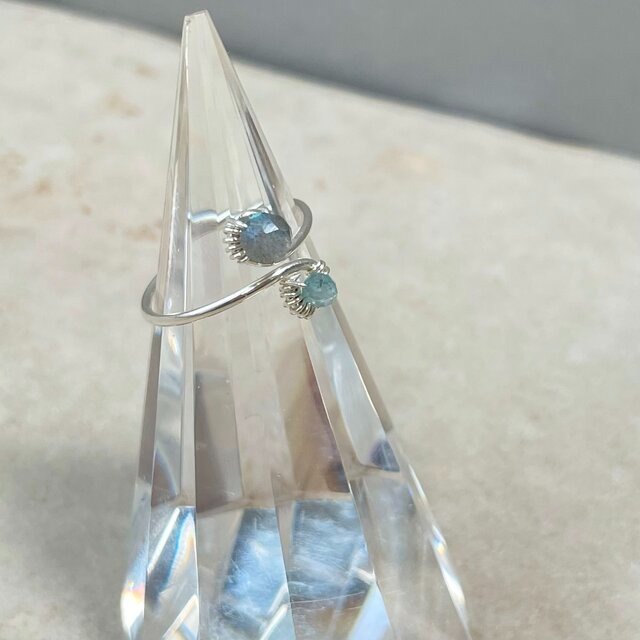 #129K ブルージルコン×ラブラドライトリング ゴールドフィルド シルバーフィルド