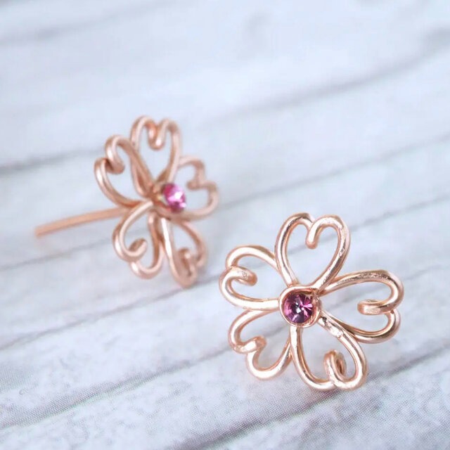 #212KP 14kgfシングルピアス【ピンクゴールド】肉球 クローバー 桜 など お好きなマークでお作りします