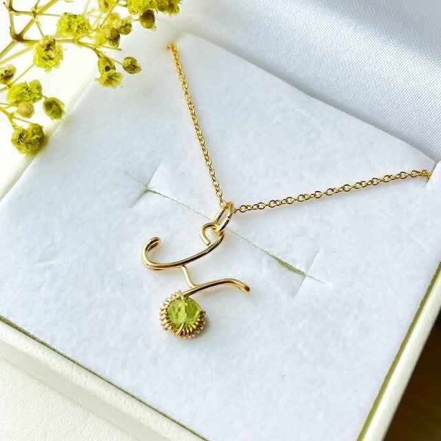 #28KT選べるイニシャルネックレス 14kgf ペリドット