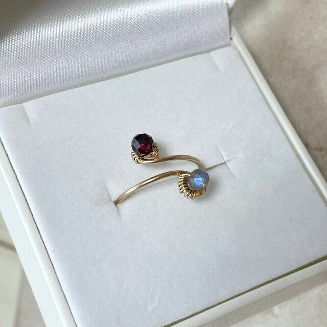 #124K ガーネット×ラブラドライト ゴールドフィルドリング